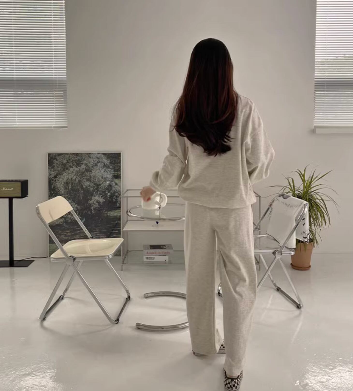 セットアップ トップス ボトムス ルームウェア トレーナー スウェット 部屋着 スウェットパンツ フルレングス ラウンドネック 襟なし ウエストゴム かわいい 大人可愛い シンプル カジュアル かっこいい こなれ感 ラフ メンズライク 主役級 存在感 ワンポイント 春 夏 秋 冬 ママ 学生 お出かけ お泊まり キャンプ 旅行 ジム 公園 女子会 休日 お花見 フェス 韓国 オルチャン コーデ 楽ちん 体型カバー ゆったり ゆる ルーズ ブラック イエロー オートミール