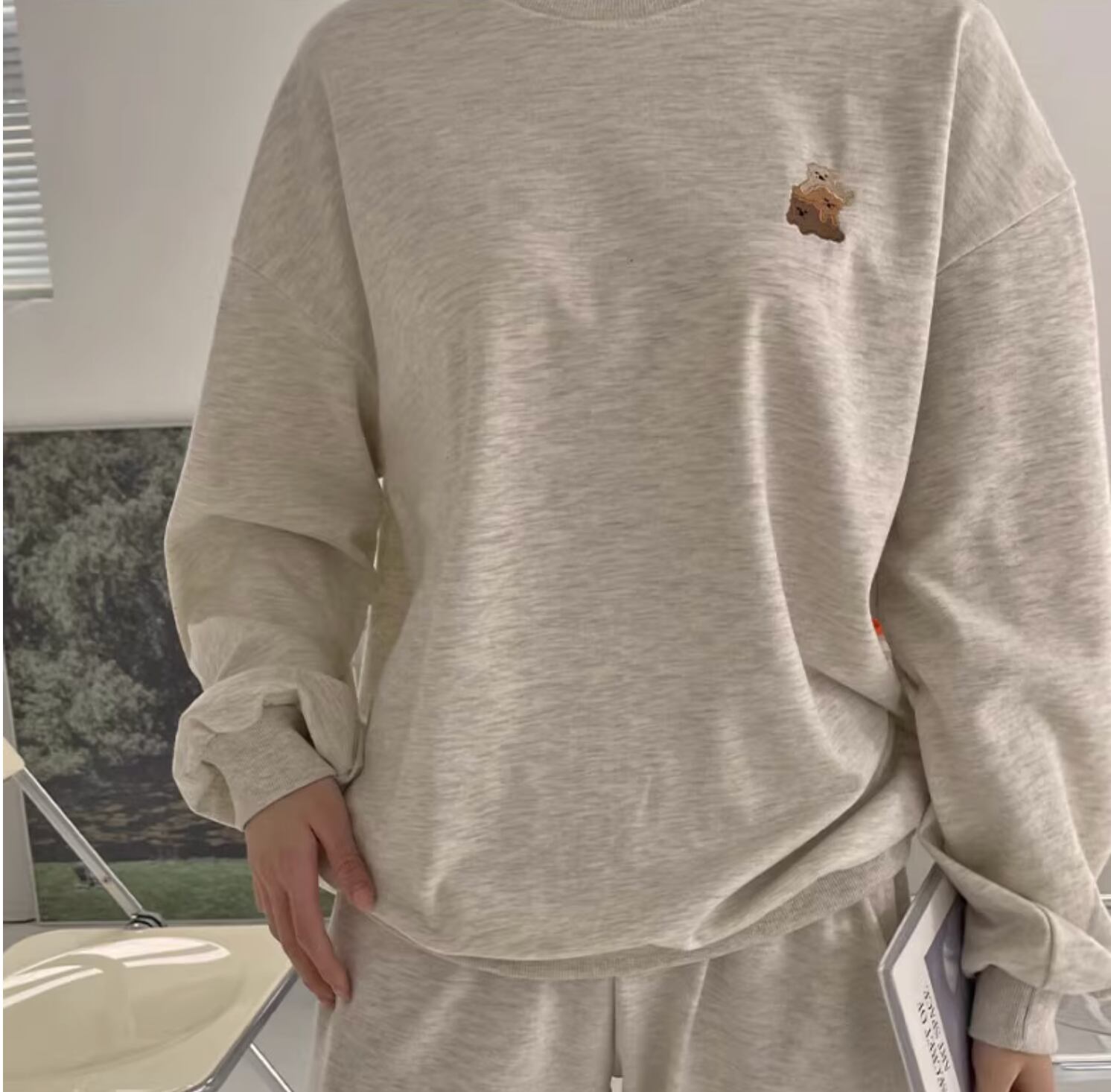 可愛いくまさんの刺繍がポイントのトレーナーセット。ルーズなフィット感で、ルームウェアとしてはもちろん、アウトドアシーンにもピッタリです。上下それぞれ単独でも使えて、コーディネートの幅が広がります。