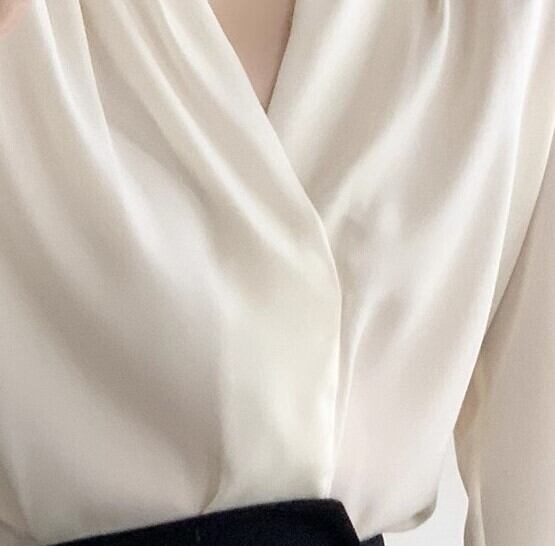 トップス ブラウス カットソー プルオーバー インナー 白シャツ 長袖 Vネック 襟なし スキッパー ノーカラー シフォン 薄手 きれいめ シンプル 大人 上品 大人可愛い 大人女子 クール エレガント フォーマル とろみ感 やわらかい 着心地 無地 万能 ベーシック 落ち感 高見え 春 秋 冬 入学式 入園式 謝恩会 二次会 レディース ビジネス OL 通勤 デイリー 着回し 普段使い S M L XL レディライク 白 ホワイト モノトーン