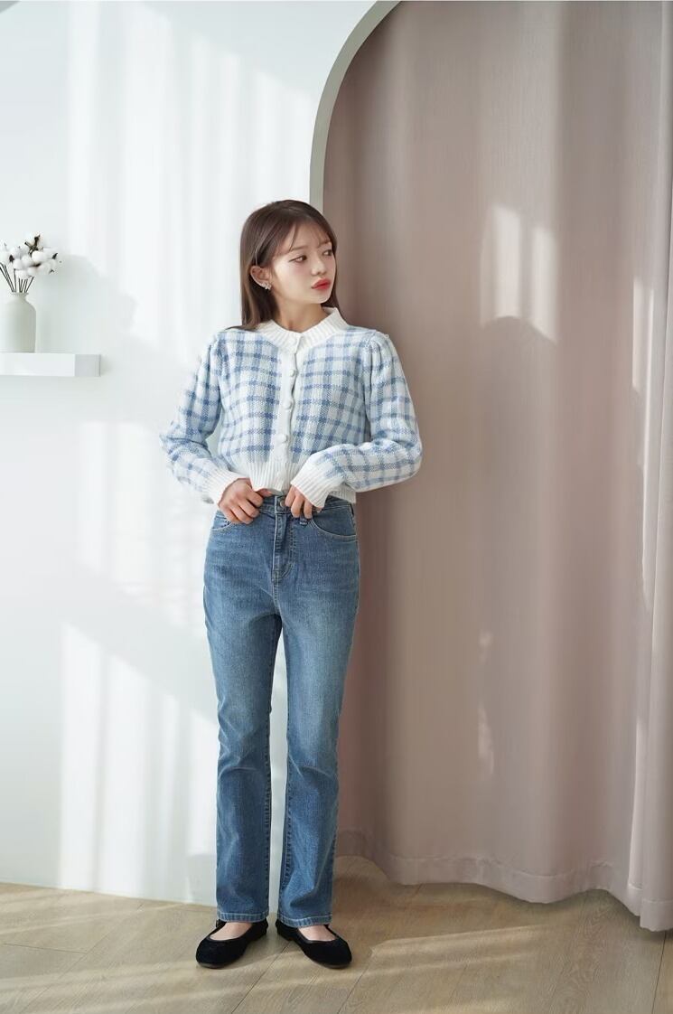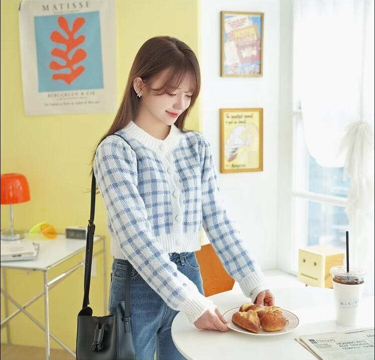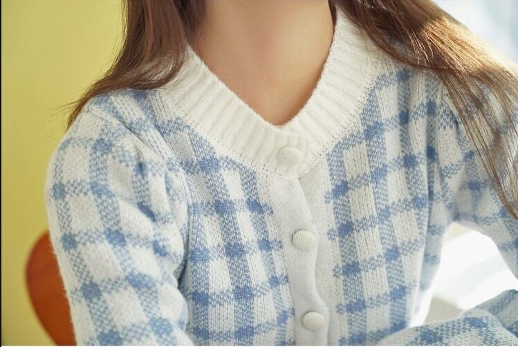 ふわふわとした質感と、チェック柄のデザインがかわいいカーディガンです♪