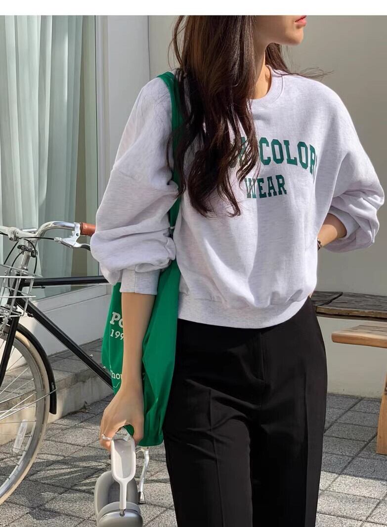 レディース トップス プルオーバー トレーナー スウェット 部屋着 長袖 ボリューム袖 ドロップショルダー 萌袖 クルーネック ストリート カジュアル おしゃれ かっこいい こなれ感 ラフ メンズライク マニッシュ ボーイッシュ スポーティー ガーリー ルーズ 抜け感 ロゴ 春 秋 冬 学生 学校 通学 部活 デート お出かけ お泊まり アウトドア キャンプ 公園 女子会 休日 韓国 楽ちん 脚長 トレンド 流行 フリーサイズ ホワイト クリーム グレー