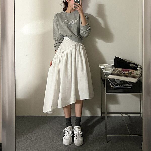 このレディースプルオーバーは、クロップド丈で女性らしい印象になりつつ、ボリュームのある袖やドロップショルダーデザインで、スポーティーなルックスも加わります。ロゴ入りのデザインがアクセントになって、オシャレ感も◎!色も、グレー、オフホワイト、ネイビーの3色から選べ、どんなボトムスとも相性抜群です。真冬の寒い日にはコートと、春や秋には一枚でも重宝するので、1年中着回しできる優れものです。