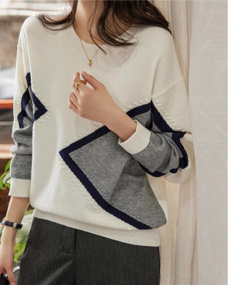 幾何学模様のデザインが目を引く大人可愛いニットセーターです★