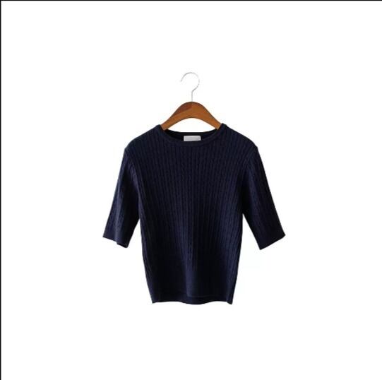 フェミニンなケーブル柄が目を引く、半袖サマーセーター♪