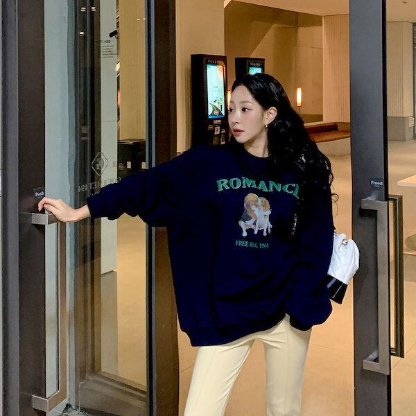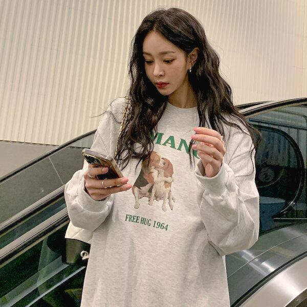 ビーグル レディース トップス プルオーバー トレーナー スウェット 長袖 ボリューム袖 ドロップショルダー 萌袖 クルーネック 大人可愛い カジュアル おしゃれ こなれ感 ラフ メンズライク マニッシュ ボーイッシュ スポーティー ガーリー ルーズ プリント 春 秋 冬 男女兼用 ユニセックス 学生 学校 通学 部活 デート お出かけ アウトドア キャンプ 公園 女子会 休日 お揃い 双子 韓国 楽ちん 体型カバー 着回し ゆる フリーサイズ ライトグレー オフホワイト ネイビー