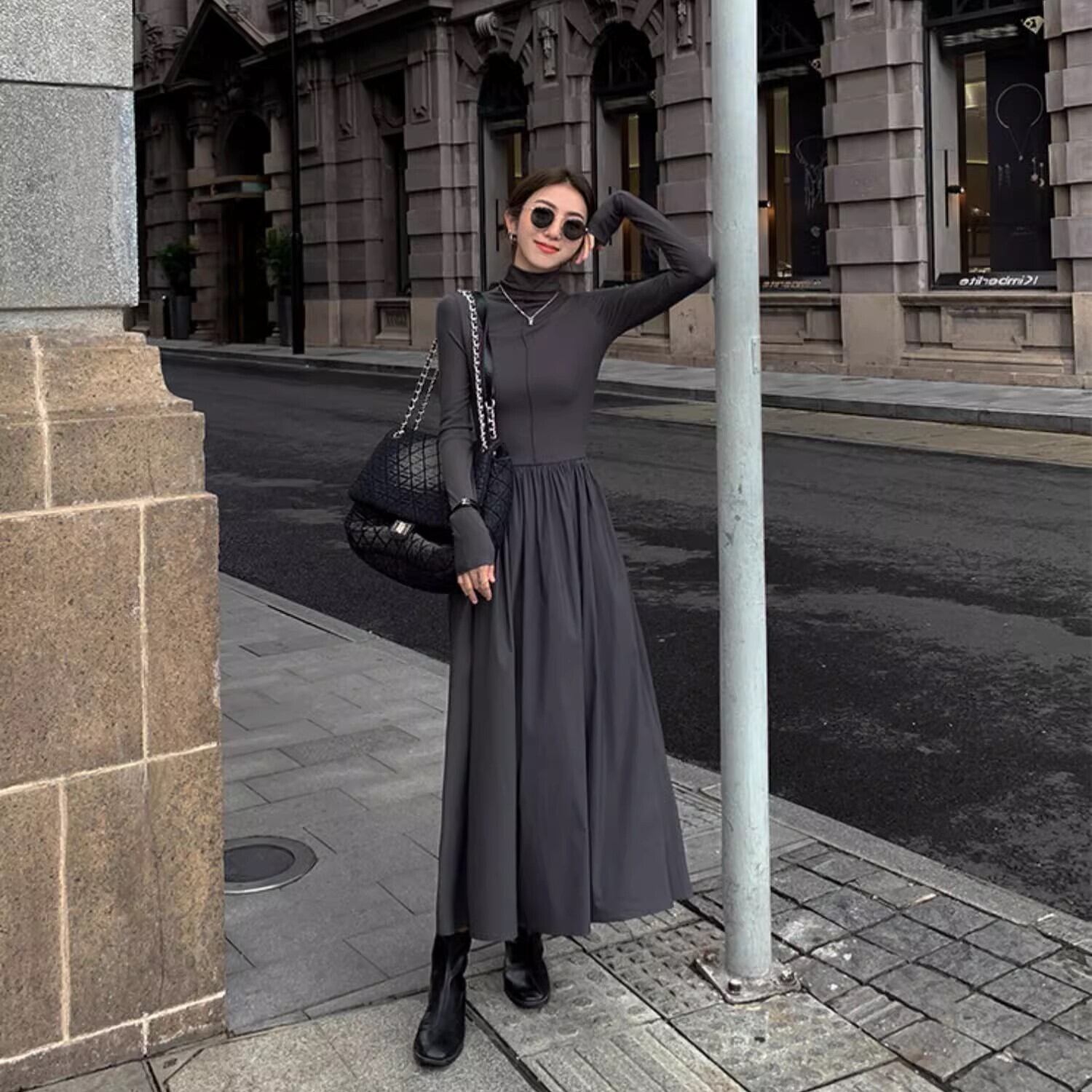 レディース ワンピース ハイネックワンピース 膝下 ロング 丈長 長袖 ハイネック タートルネック エンボス エンボス加工 かわいい 大人可愛い きれいめ シンプル カジュアル 上品 おしゃれ かっこいい こなれ感 ラフ マニッシュ クール エレガント モダン とろみ感 抜け感 ナチュラル カジュアルコーデ 無地 秋 冬 ママ デート お出かけ お泊まり 旅行 レストラン 公園 女子会 休日 ホテル ショッピング 海外旅行 重ね着 コーデ 楽ちん プレゼント 体型カバー 美脚 脚長 普段使い 着回し モ
