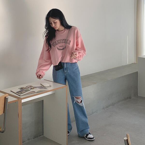 切りっぱなし レディース トップス プルオーバー トレーナー スウェット クロップド丈 長袖 ボリューム袖 ドロップショルダー 萌袖 クルーネック 刺繍 大人可愛い カジュアル おしゃれ かっこいい こなれ感 ラフ メンズライク マニッシュ ボーイッシュ スポーティー ガーリー ルーズ 春 秋 冬 学生 学校 通学 部活 お出かけ アウトドア キャンプ 公園 女子会 休日 お揃い 双子 韓国 楽ちん 体型カバー 脚長 着回し トレンド 流行 ゆる フリーサイズ ライトグレー ピンク ネイビー