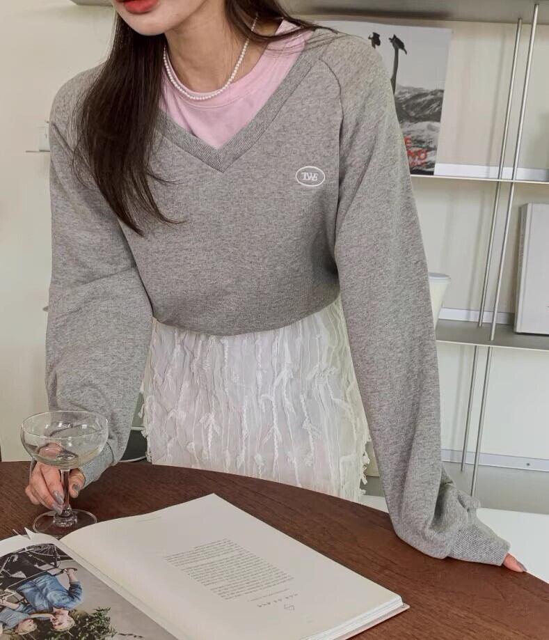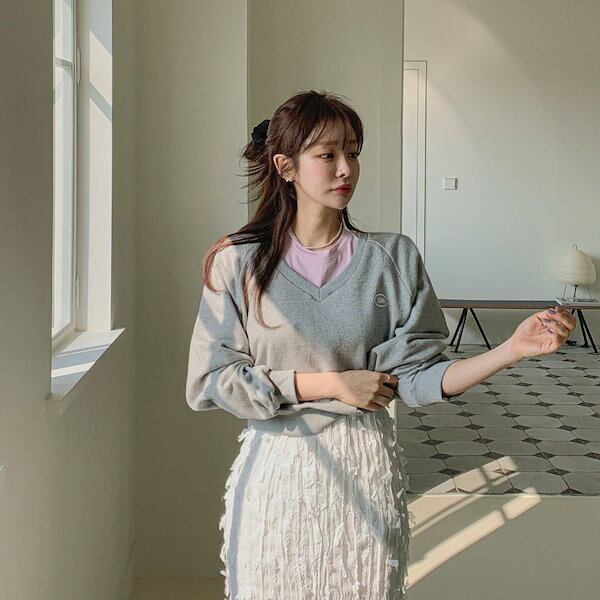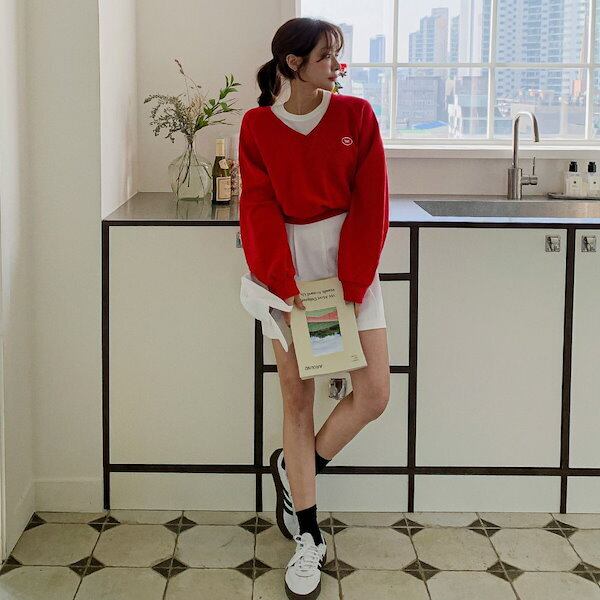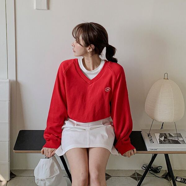レディース トップス プルオーバー トレーナー スウェット クロップド丈 長袖 萌袖 ラグラン Vネック 刺繍 ウエストマーク 大人可愛い きれいめ シンプル カジュアル おしゃれ かっこいい こなれ感 ラフ メンズライク マニッシュ ボーイッシュ スポーティー ガーリー ルーズ 春 秋 冬 学生 学校 通学 部活 デート お出かけ アウトドア キャンプ 公園 女子会 休日 お揃い 双子 韓国 楽ちん 体型カバー 脚長 着回し トレンド 流行 ゆる フリーサイズ ライトグレー レッド ネイビー