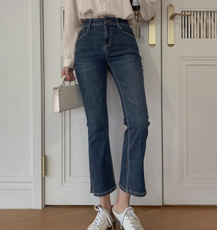 カジュアルデニムパンツ クロップド丈デニム スリット入り レディース パンツ ボトムス デニム ロングパンツ ワイドパンツ クロップドスカート 8分丈 ストレート Iライン ファスナー ポケット ハイウエスト かわいい 大人可愛い きれいめ シンプル カジュアル 上品 おしゃれ かっこいい レトロ こなれ感 ラフ ガーリー クール モード系 エレガント モダン 主役級 存在感 無地 春 夏 秋 冬 オールシーズン ロングシーズン シーズンレス OL 通勤 学生 学校 アウトドア イベント リゾート 旅行