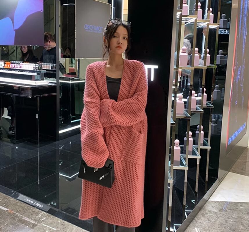 暖かみのあるニット素材にゆったりとしたルーズシルエットがキュートで可愛いロングカーディガンです!