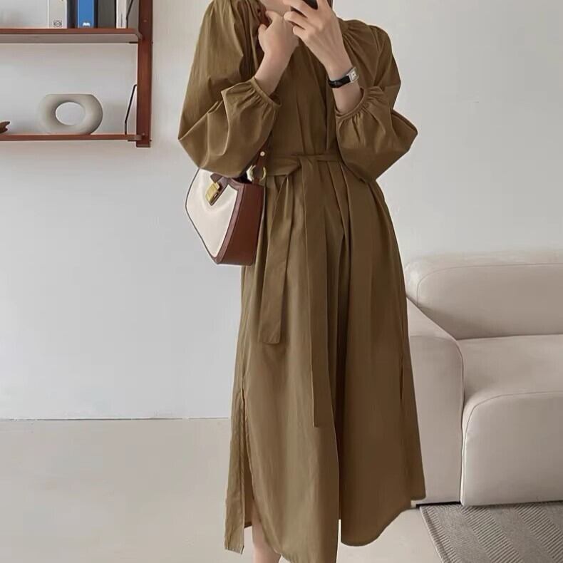 レディース ワンピース 膝下 ロング 長袖 シャーリング ストレート ウエストリボン 2way かわいい 大人可愛い シンプル カジュアル 上品 おしゃれ かっこいい こなれ感 ラフ 主役級 存在感 とろみ感 都会的 カジュアルコーデ 春 秋 冬 ママ デート お出かけ お泊まり レストラン 公園 女子会 休日 高原 ホテル ガーデン 合コン コンパ 重ね着 コーデ 暖かい 防寒 体型カバー 美脚 脚長 普段使い 着回し モテ 清楚 トレンド 流行 インスタ映え 定番 フリーサイズ 黒 ブラック 茶色