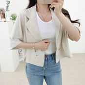 このリネン混の半袖ジャケットは、薄手で肌触りが良く、大人可愛い印象を与えます。