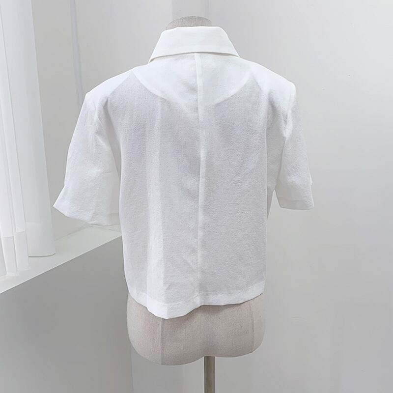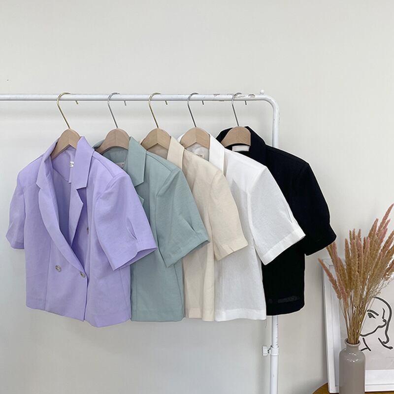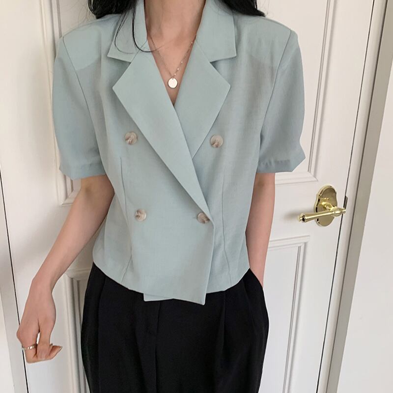 ダブルボタン レディース ジャケット 上着 ショート クロップド丈 半袖 Vネック フェミニン コンサバ 薄手 大人可愛い きれいめ シンプル カジュアル 上品 おしゃれ かっこいい こなれ感 ラフ 個性的 クール 存在感 とろみ感 抜け感 都会的 ナチュラル 春 夏 発表会 授業参観 オフィス OL 通勤 デート お出かけ イベント リゾート 旅行 女子会 ショッピング 合コン コンパ オルチャン コーデ 楽ちん 普段使い 着回し モテ フリーサイズ ホワイト ブラック イエロー グリーン パープル
