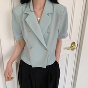 上品さときれいめな印象を与える、ダブルボタンのショート丈ジャケットです。