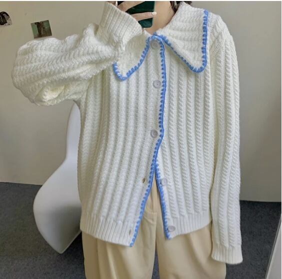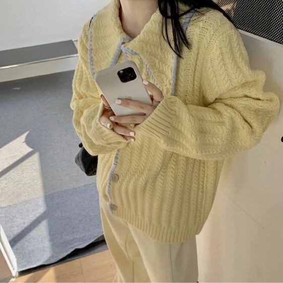 レディース トップス ジャケット カーディガン アウター 上着 羽織 コーディガン 長袖 ボリューム袖 萌袖 Vネック 襟付き ワイド ケーブルニット リブニット クロシェ ボタン バイカラー 厚手 ニット かわいい カジュアル レトロ ガーリー ルーズ 個性的 ラブリー キュート ケーブル柄 冬 ママ マタニティ 学生 学校 通学 お出かけ 女子会 休日 ショッピング お花見 カフェ 重ね着 楽ちん 暖かい 防寒 体型カバー 普段使い 着回し S M L XL 白 ホワイト 黄色 イエロー 緑 グリーン