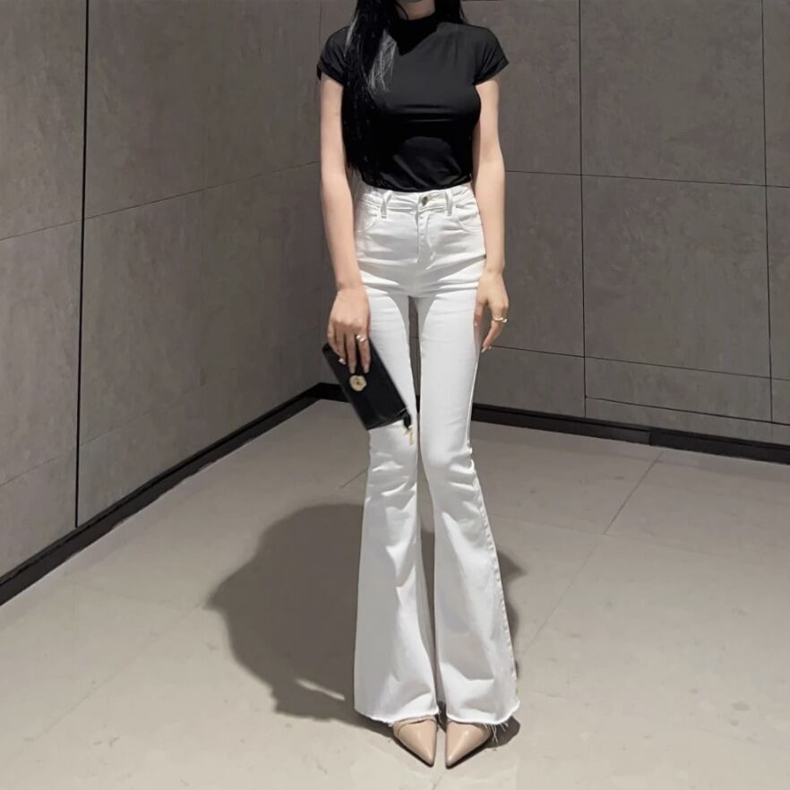 L ウェスト/ 66-74 ヒップ/ 82-100 太もも周り/ 44-54 股上/ 27 裾口/ 27 パンツ丈/ 107