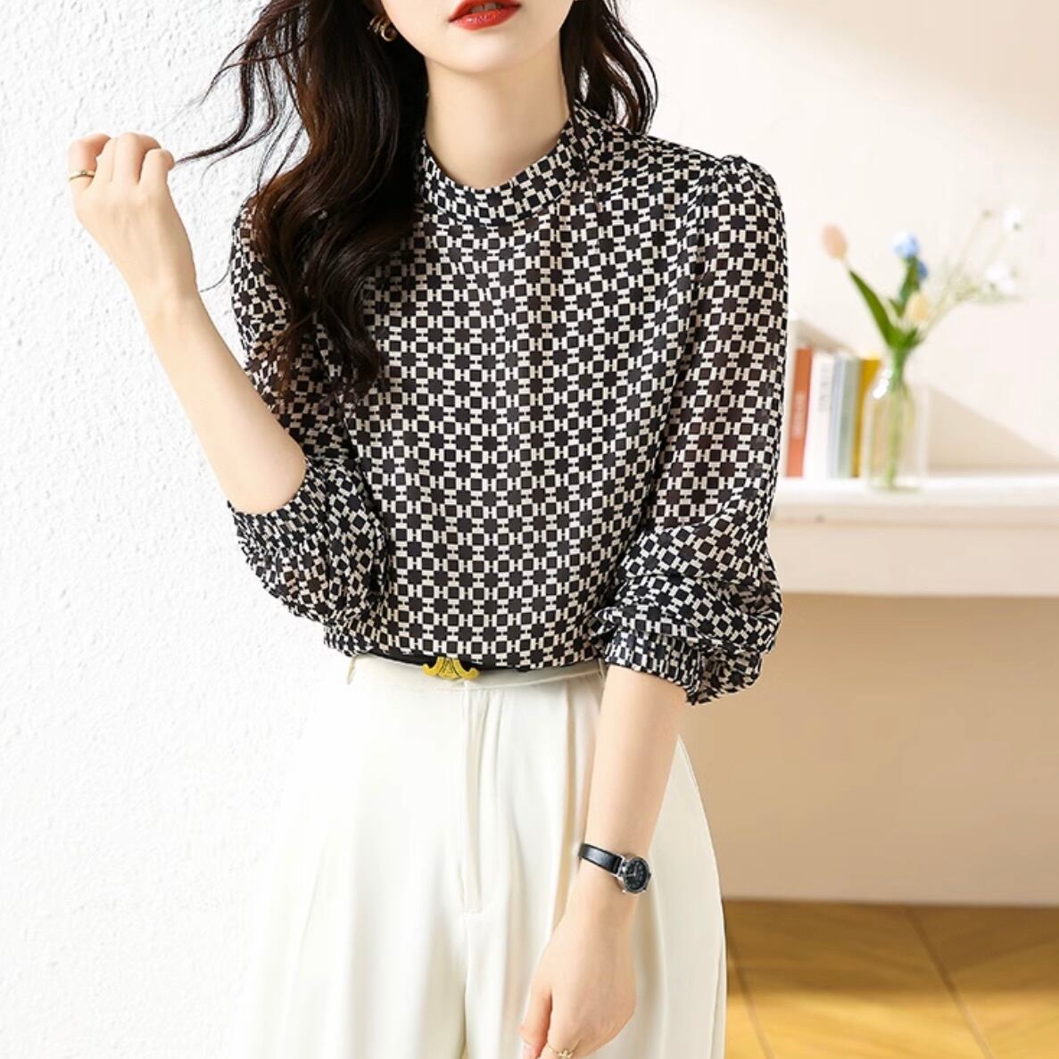 モダンな印象の総柄デザインが大人モードにぴったりなブラウス。
