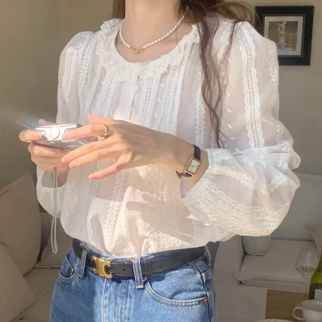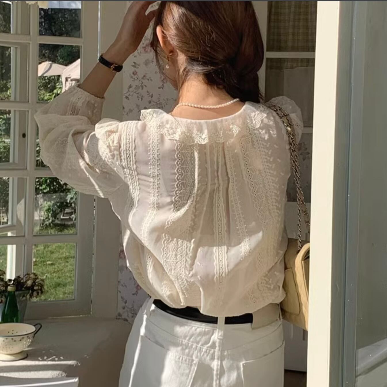 レディース ブラウス 長袖 パフスリーブ 萌袖 襟付き フェミニン レース 刺繍 シフォン フリル レースアップ 透け感 刺繡 かわいい 大人可愛い きれいめ シンプル カジュアル 上品 おしゃれ かっこいい レトロ こなれ感 ラフ ガーリー 個性的 とろみ感 抜け感 ラブリー キュート クラシカル カントリー ロマンティック ナチュラル 総柄 春 デート お出かけ 公園 女子会 休日 ガーデン 重ね着 韓国 オルチャン コーデ 楽ちん プチプラ 普段使い 着回し モテ 清楚 トレンド インスタ映え 定番