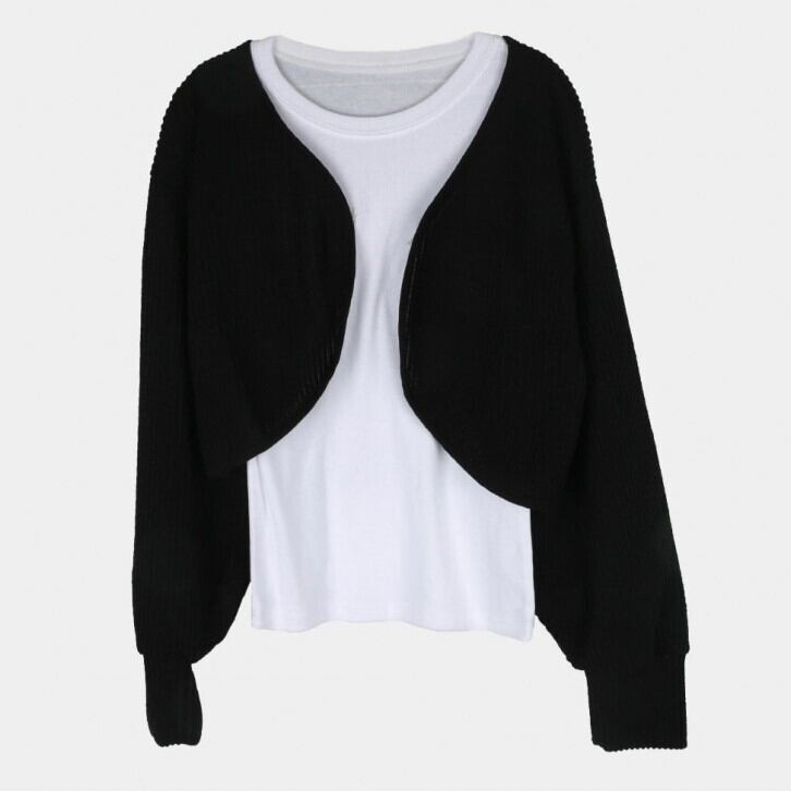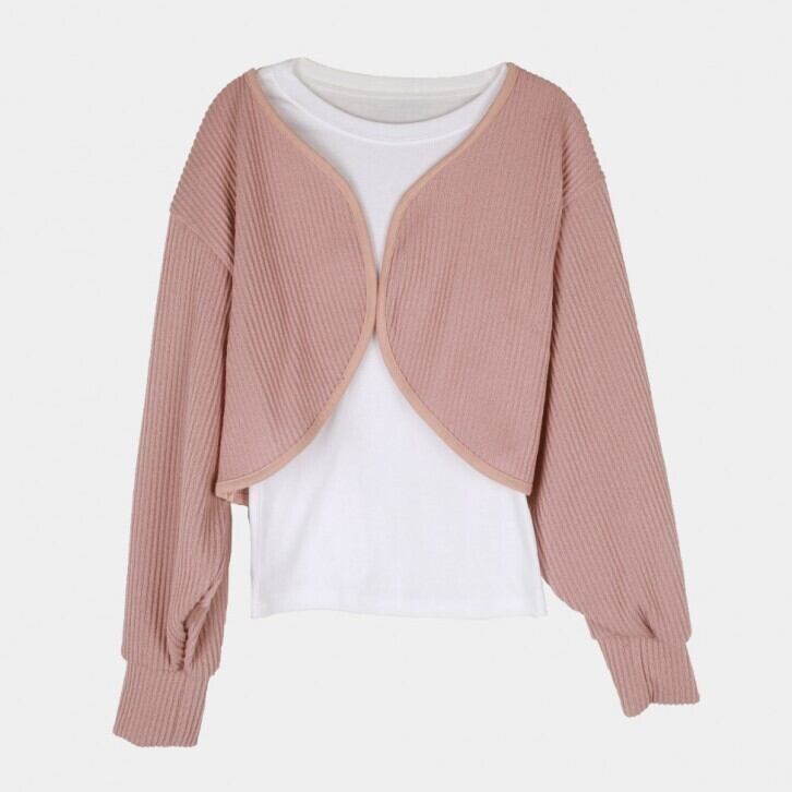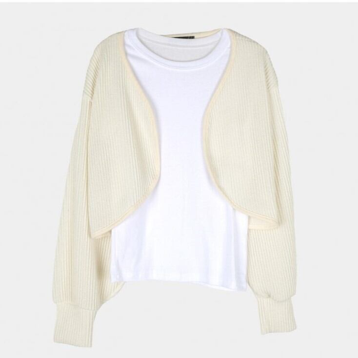 ボレロとTシャツが別々にも着られるので、単品使いはもちろん、組み合わせでコーデの幅も広がります。