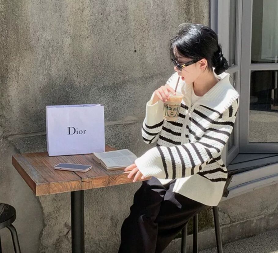 ニット レディース トップス カーディガン 上着 羽織 長袖 ボリューム袖 ドロップショルダー 萌袖 Vネック 襟付き ワイド 前開き 伸縮性 厚手 かわいい 大人可愛い シンプル カジュアル おしゃれ こなれ感 ラフ ルーズ 個性的 主役級 存在感 とろみ感 抜け感 ボーダー 秋 冬 誕生日 ハロウィン クリスマス バレンタイン 授業参観 大会 会議 MTG ミーティング プレゼン ママ マタニティ オフィス ビジネス OL 通勤 学生 学校 通学 デート お出かけ お泊まり 旅行 海 レストラン 公園