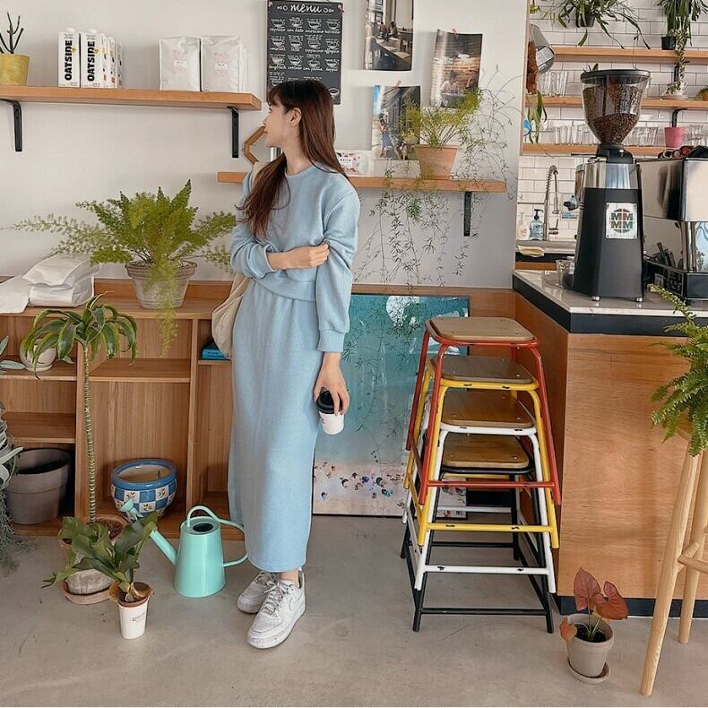 レディース セットアップ ワイドパンツ ロングスカート 長袖 ラウンドネック タイト スリム 細身 ストレート ニット かわいい 大人可愛い きれいめ シンプル カジュアル 上品 おしゃれ レトロ こなれ感 ラフ ガーリー クール キュート ナチュラル 無地 春 秋 学生 通学 デート お出かけ お泊まり 女子会 ショッピング カフェ 韓国 コーデ 楽ちん 体型カバー 普段使い 着回し モテ 清楚 トレンド 流行 インスタ映え XS S M L XL 2XL 3XL 4XL 大きいサイズ ブラック ブルー