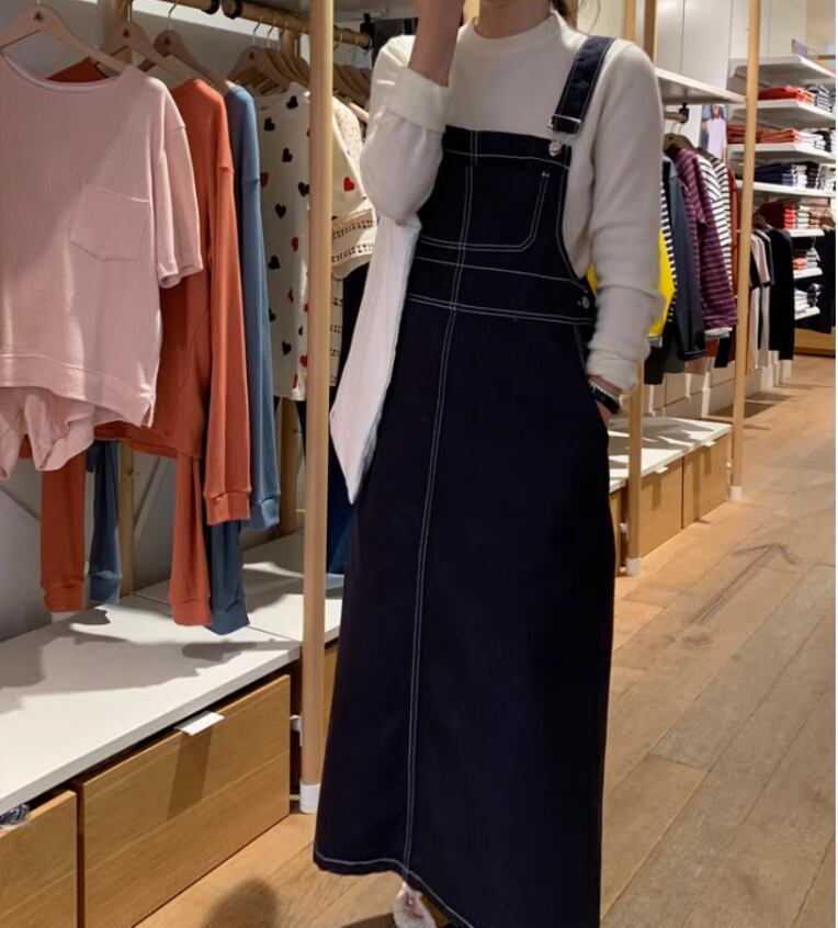 ジャンパースカート サスペンダーワンピース レディース ワンピース オールインワン デニムスカート 膝下 ロング 袖なし ストレート ポケット ブルーデニム カジュアル おしゃれ かっこいい レトロ こなれ感 ラフ メンズライク マニッシュ ガーリー 抜け感 学生風 ベーシック アメリカン 無地 ママ 通勤 学生 学校 通学 デート お出かけ お泊まり アウトドア キャンプ リゾート 旅行 レストラン 公園 女子会 休日 重ね着 コーデ 楽ちん 体型カバー 普段使い 着回し フリーサイズ ブルー