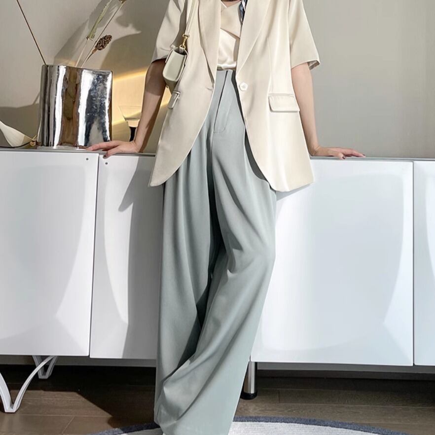 キレイめカジュアルから大人の抜け感スタイルまで、幅広いコーディネートに対応するワイドストレートパンツです。フロントには深めのプリーツを施したデザインが特徴、程よく広がるシルエットで、歩くたびに揺れる裾が抜け感を演出します。