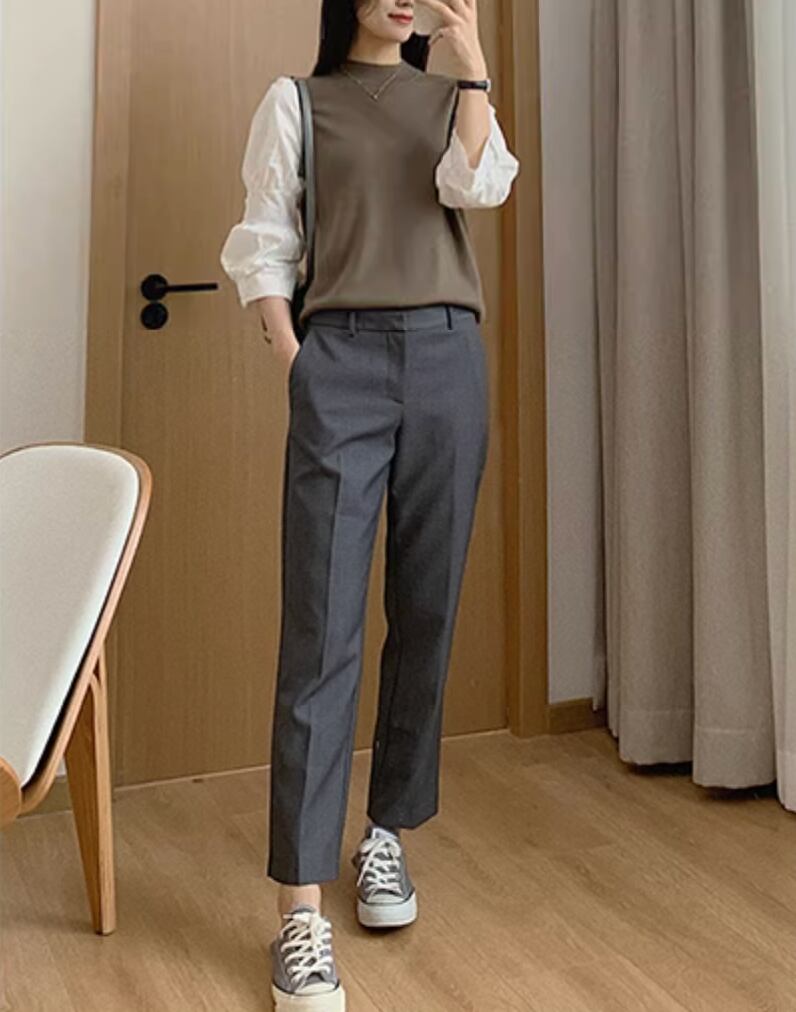 レディース パンツ ボトムス ストレートパンツ クロップドスカート 8分丈 9分丈 ハイウエスト センタープレス かわいい 大人可愛い きれいめ シンプル カジュアル 上品 おしゃれ かっこいい こなれ感 モダン 主役級 存在感 キュート 都会的 無地 春 夏 オフィス 通勤 学生 学校 通学 デート お出かけ 旅行 レストラン 休日 ホテル ショッピング お花見 合コン コンパ カフェ 韓国 オルチャン 体型カバー 美脚 脚長 XS S M L XL 2XL ブラック グレー オートミール