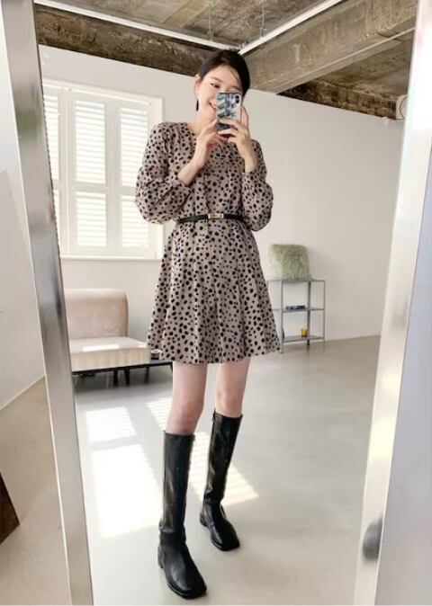 落ち着いたアッシュベージュのカラーにレオパード柄がスタイリッシュでオシャレなワンピースです!