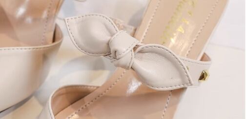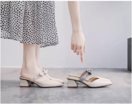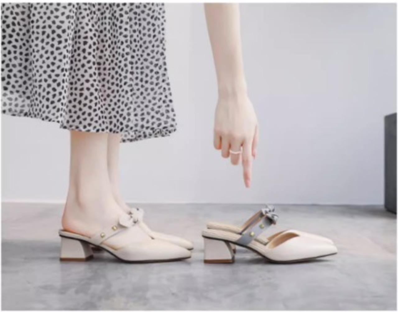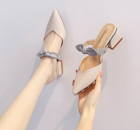 ポインテッドトゥにリボンベルトとスタッズをあしらった大人可愛いミュールです♪