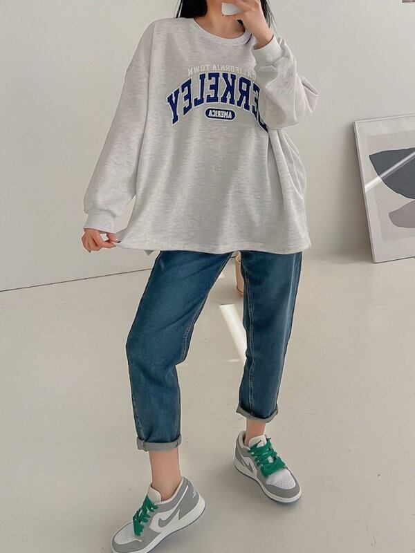 レディース トップス トレーナー スウェット 長袖 ボリューム袖 ドロップショルダー 萌袖 クルーネック カジュアル おしゃれ かっこいい こなれ感 ラフ メンズライク マニッシュ ボーイッシュ スポーティー ガーリー カレッジ風 ロゴ 春 秋 冬 ユニセックス 学生 通学 部活 デート お出かけ お泊まり アウトドア キャンプ 公園 女子会 休日 ライブ フェス お揃い 双子 韓国 楽ちん 体型カバー 普段使い 着回し ゆったり ゆる フリーサイズ ブラック グレー ライトグレー パープル