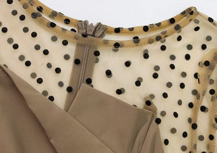 フロントサイドに深く入ったスリットが大人セクシーなマキシ丈タイトドレス。ロングパフスリーブのシースルートップスが程よく二の腕をカバー、ドットモチーフで大人可愛さもプラス♡バックスタイルも美しく、存在感のある一着となっております。