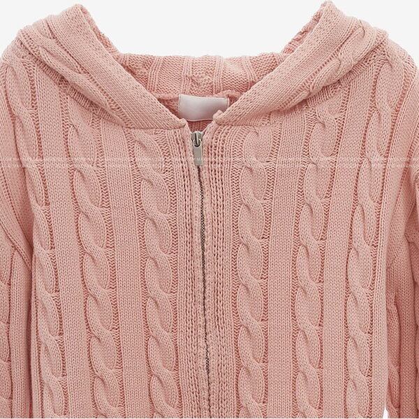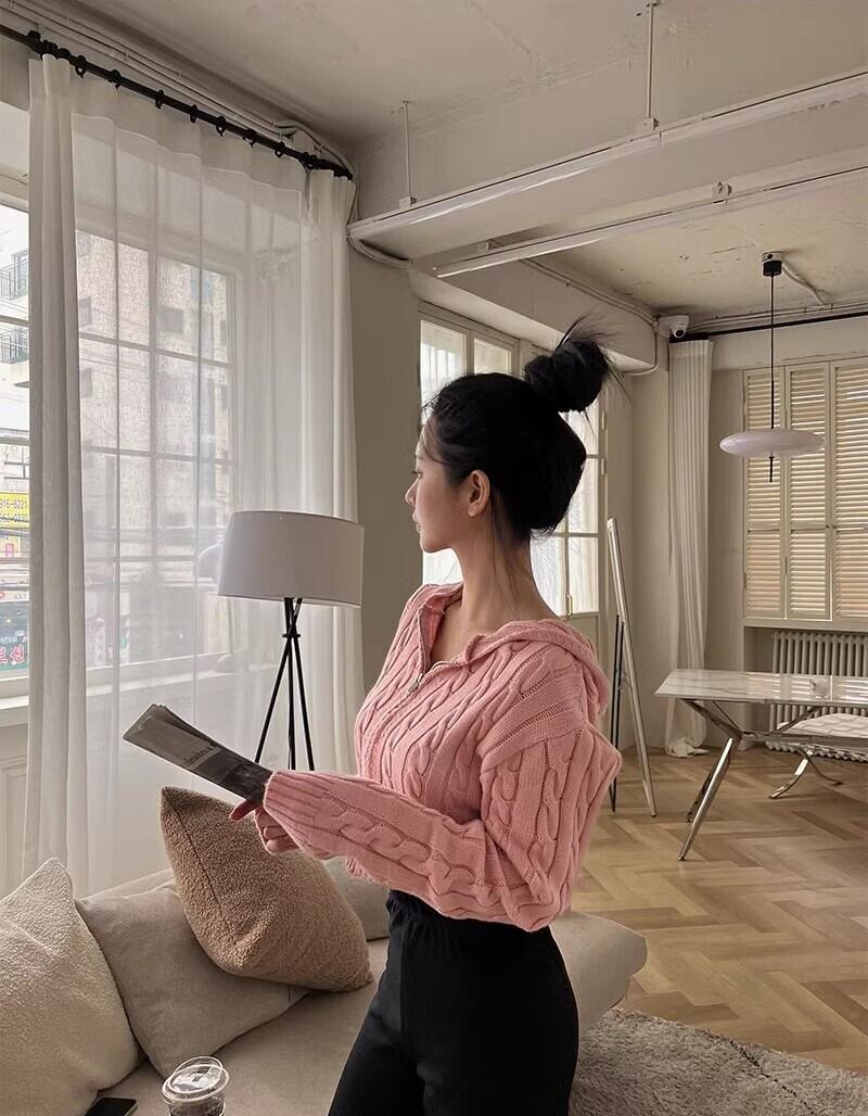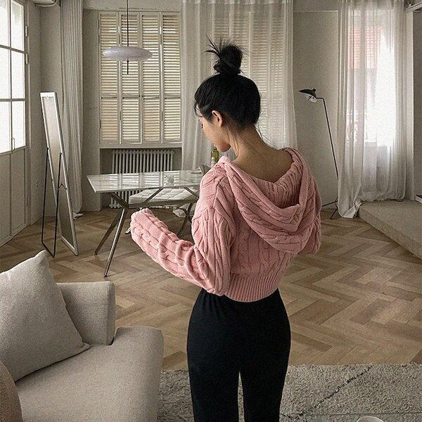 トレンド感抜群のクロップド丈パーカーが新登場!女性らしいシルエットで脚長効果も期待でき、圧倒的なスタイルアップ効果が魅力です。ドロップショルダーに萌袖のボリューム袖が可愛らしさを演出し、フードとファスナー付きで機能性も抜群です。ケーブルニットの編み柄もポイントで、カジュアルな着こなしから、ガーリーなスタイルまで幅広くお楽しみいただけます。