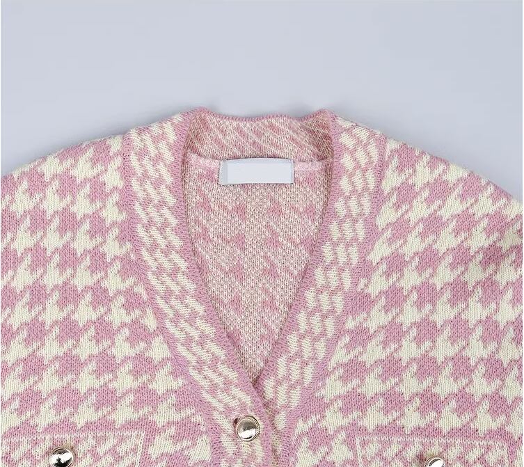 ニットカーディガン ショート丈カーディガン 4カラー展開 千鳥格子ニット レディース トップス セーター カーディガン 上着 羽織 長袖 Vネック ストレート Iライン 前開き コンサバ ボタン かわいい 大人可愛い きれいめ シンプル カジュアル 上品 おしゃれ かっこいい レトロ こなれ感 ラフ ガーリー ルーズ 個性的 クール モード系 エレガント モダン 主役級 存在感 キュート 都会的 クラシカル 格子柄 千鳥格子 春 秋 冬 ママ オフィス ビジネス OL 通勤 学生 パーティー イベント