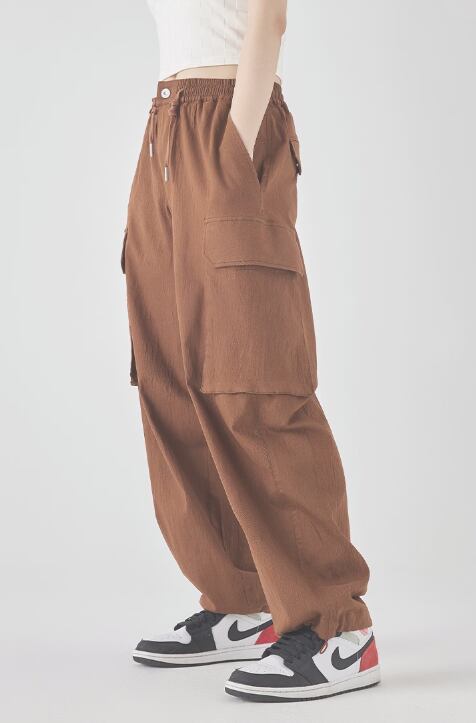 カーゴワイドパンツは、ゆったりとしたシルエットでリラックス感があり、大人可愛いコーデにぴったりです。ハイウエストタイプなので脚長スタイルアップもできます。