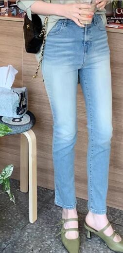 このデニムパンツは、スリムなシルエットとハイウエストで、脚長効果抜群です。どんなトップスにも合わせやすく、カジュアルにもきれいめにも着こなせます。