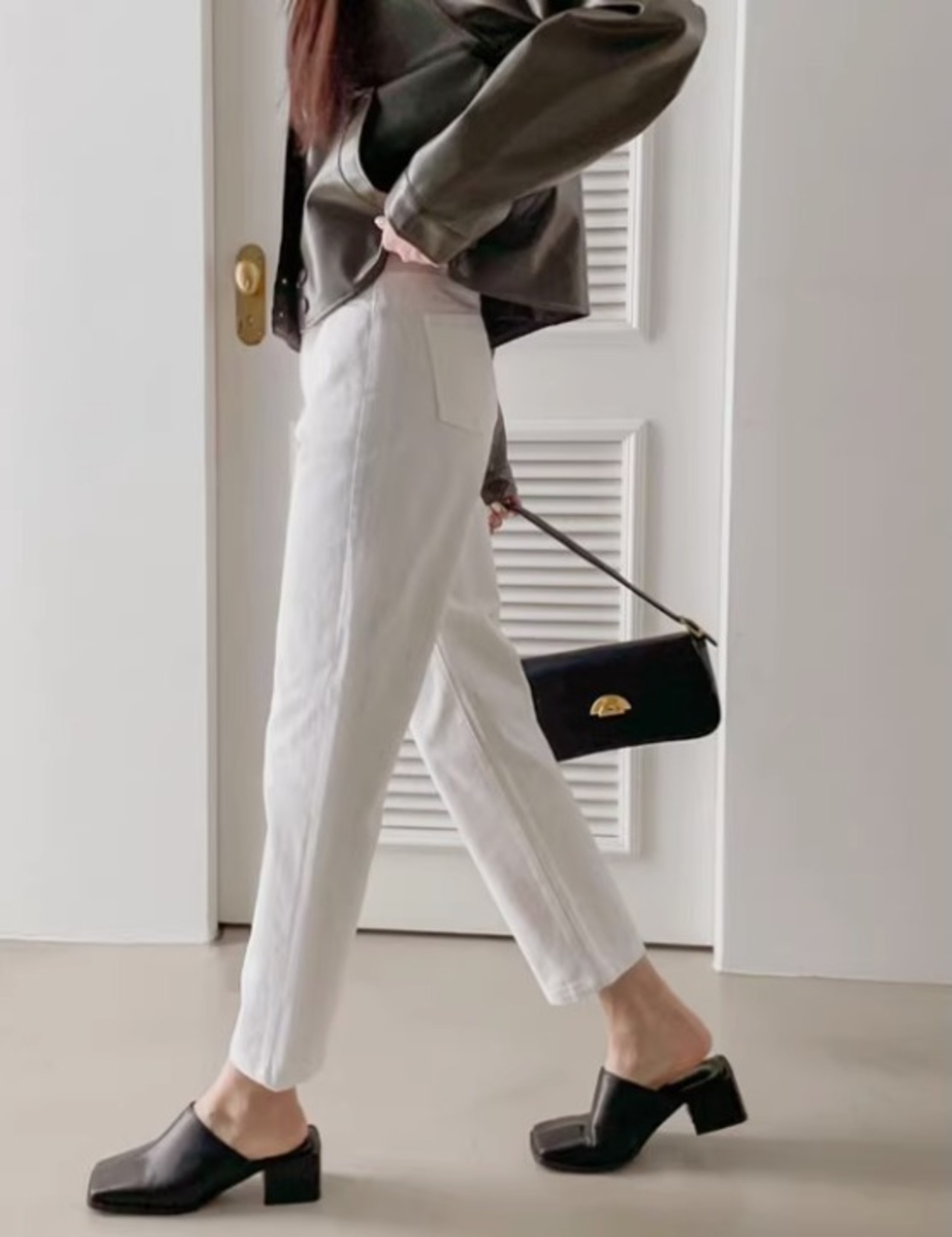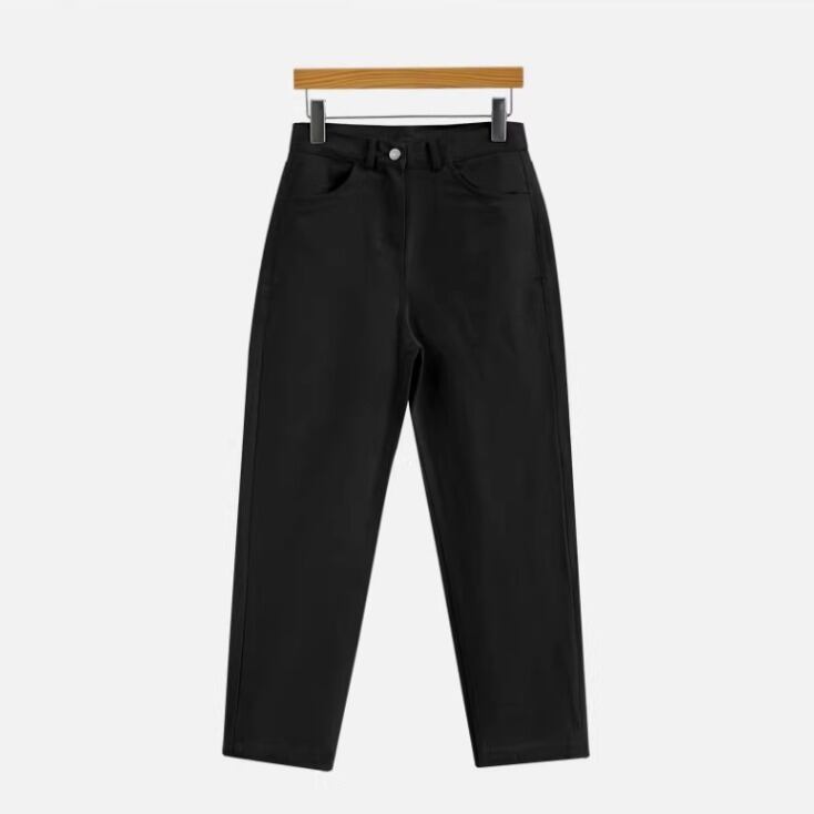 テーパードシルエットとクロップド丈の組み合わせが特徴で、足首をすっきりと見せながらも脚のラインを美しく引き立てます。Iラインのシルエットがスタイリッシュさを演出し、女性らしい印象を与えます。コットン使用のパンツだから長時間の着用でも快適さをキープ。ビジネスシーンにもぴったりな定番的シンプルなカジュアルパンツです。