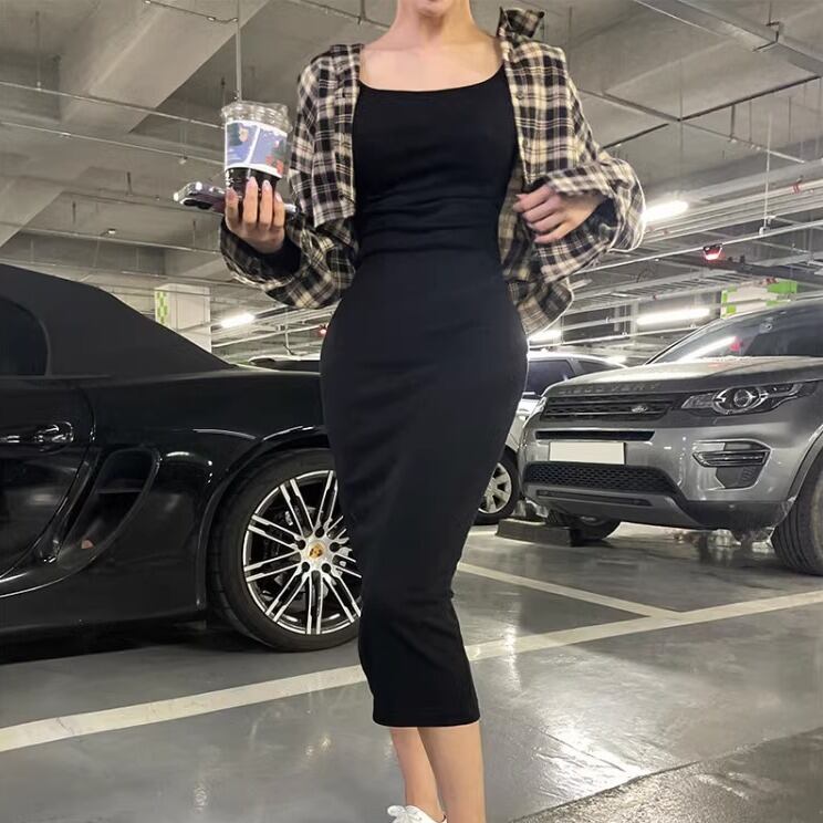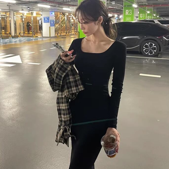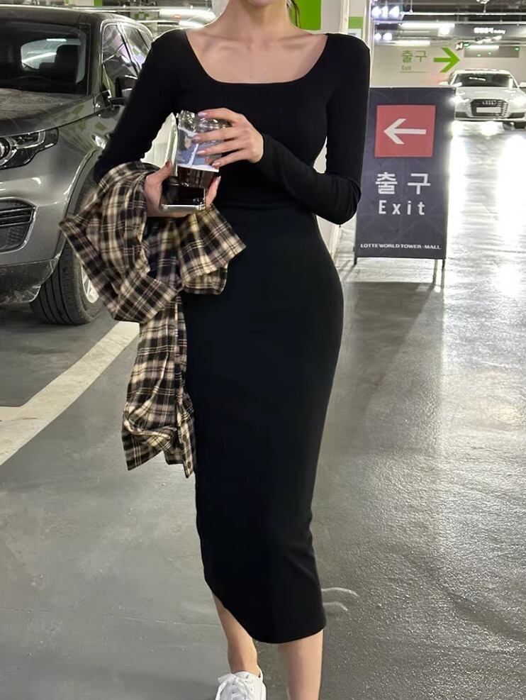 レディース ワンピース ミモレ 7分丈 長袖 スクエアネック 襟なし ノーカラー タイト スリム 細身 Iライン コンサバ 薄手 ストレッチ 伸縮性 きれいめ シンプル カジュアル 上品 おしゃれ かっこいい レトロ こなれ感 ラフ クール 抜け感 都会的 ラグジュアリー クラシカル アクティブ 休日感 セクシー 無地 春 夏 秋 オフィス ビジネス OL 通勤 デート お出かけ リゾート 旅行 海 女子会 休日 ショッピング 合コン Bar 普段使い 着回し モテ フリーサイズ ブラック グレー