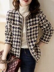 レディース ジャケット 長袖 襟なし 前開き かわいい 大人可愛い きれいめ カジュアル おしゃれ 個性的 クール モード系 エレガント モダン 主役級 存在感 かっちり 都会的 クラシカル 千鳥格子 秋 冬 誕生日 クリスマス バレンタイン 学生 学校 通学 デート お出かけ お泊まり パーティー イベント レストラン 公園 女子会 休日 ホテル ガーデン ショッピング コンサート ライブ 合コン コンパ カフェ 韓国 オルチャン コーデ 暖かい 防寒 着回し インスタ映え