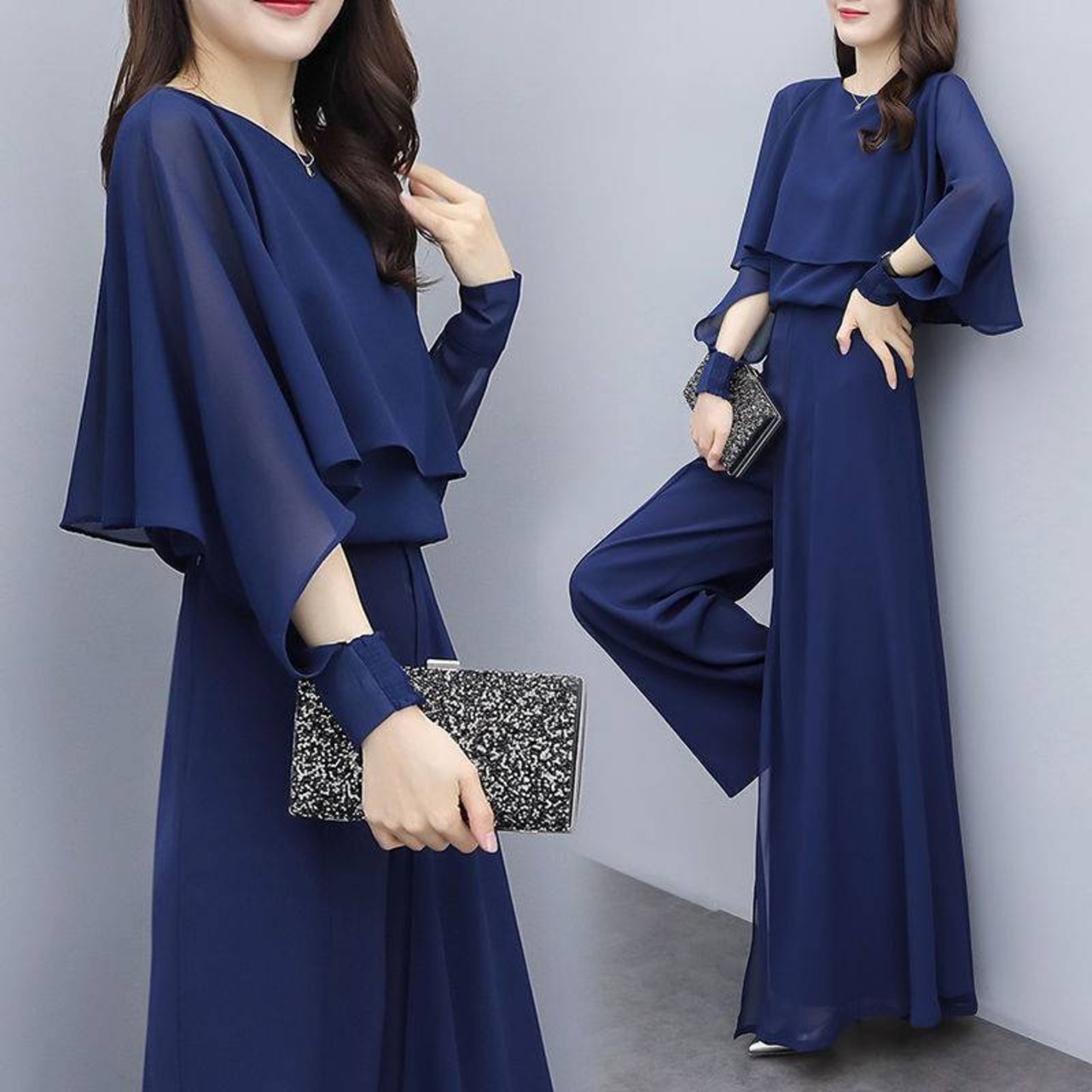 ドレス パーティー 結婚式 二次会 演奏会 発表会 ステージ 舞台 衣装 謝恩会 ラウンジ アンクル丈 5分袖 7分袖 フレアスリーブ Uネック パンツ セパレート セットアップ 可愛い きれいめ シンプル 大人可愛い 上品 おしゃれ クール モード エレガント モダン 主役級 存在感 フォーマル とろみ感 清楚 ゴージャス エレガント シック クラシカル 無地 イベント ホテル レストラン 韓国 体型カバー 二の腕カバー 美脚 脚長 高見え 女子会 シーズンレス 黒 ネイビー