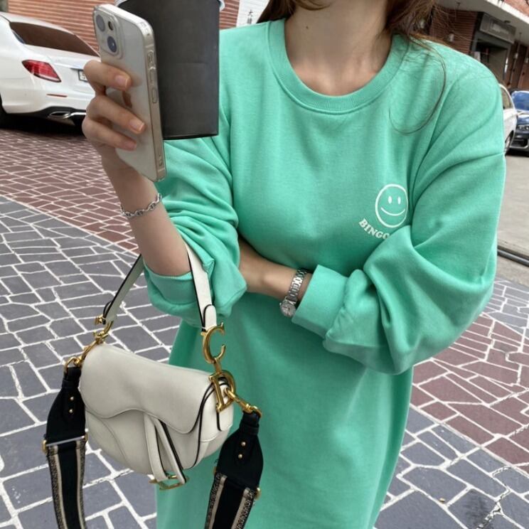 ニコちゃんのアイコンプリントが可愛らしいスウェットワンピース。ストレートなIラインとオーバーサイズのシルエットがカジュアルでおしゃれな雰囲気を醸し出します。裾にはスリットが入り、動きやすさと抜け感をプラス。さらに、裏起毛素材が使われているため、秋冬の寒い季節でも暖かさを提供します。