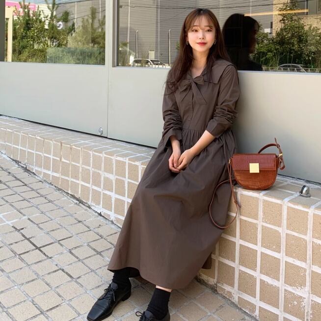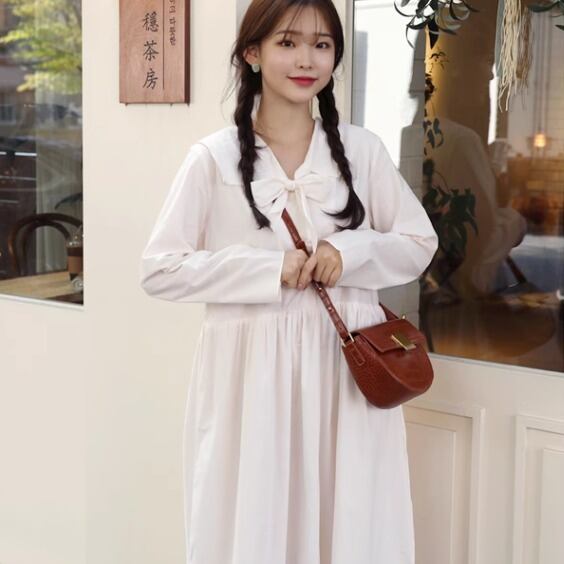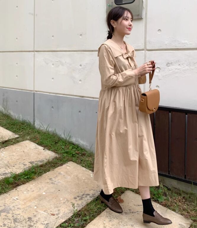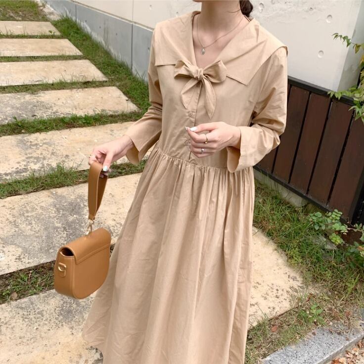 レディース ワンピース シャツワンピ ロング 長袖 Vネック 襟付き セーラーカラー りぼんタイ フレア Aライン オーバーサイズ リボン 前開き 薄手 大人可愛い シンプル カジュアル おしゃれ レトロ こなれ感 ラフ ガーリー ルーズ 個性的 抜け感 ラブリー キュート ラグジュアリー カレッジ風 学生風 ナチュラル 休日感 フェミニン 控えめ 無地 春 秋 学生 お出かけ 公園 休日 ショッピング カフェ 楽ちん 体型カバー 普段使い 清楚 ゆったり ホワイト ブラウン ベージュ 大人カラー