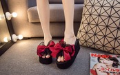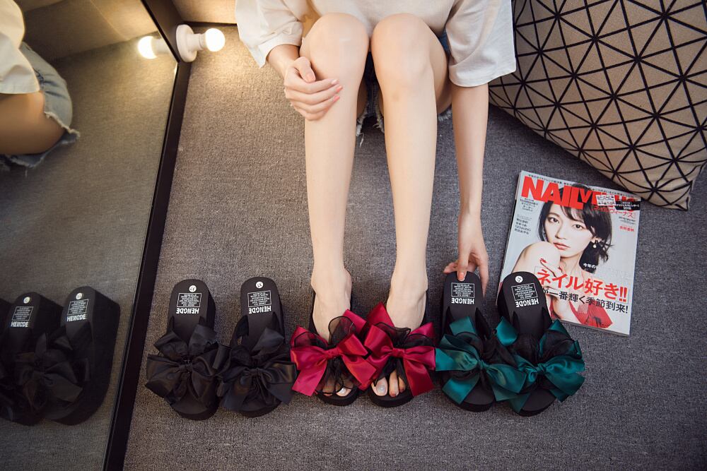 大きいフリルリボンが可愛らしく、カジュアルにもエレガントにも合わせることができます!6cmのヒールで、脚長効果も抜群です♪