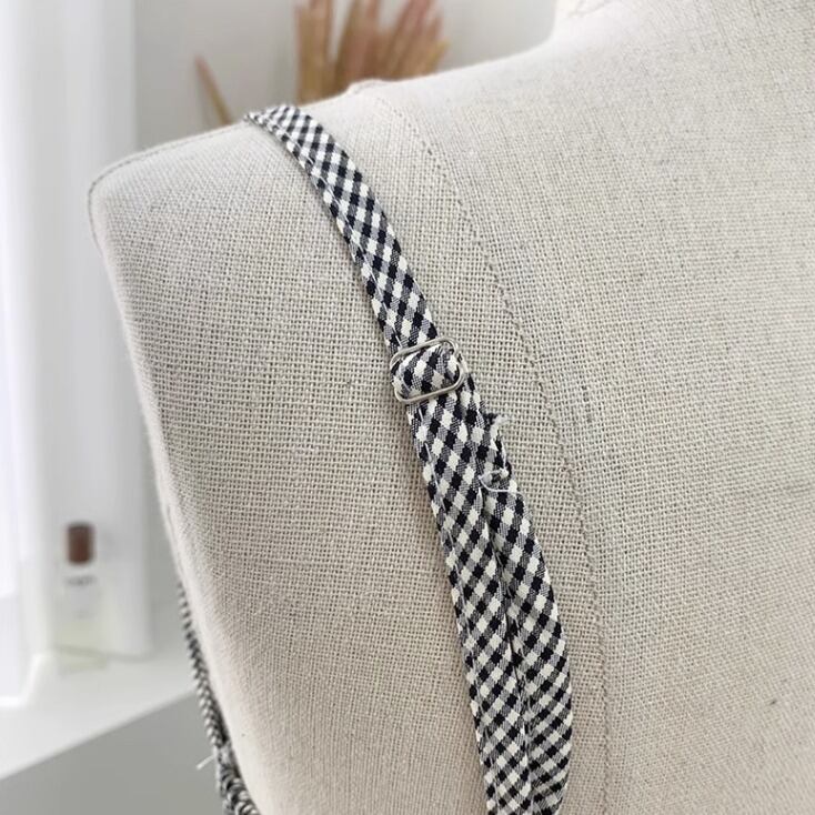 フリーサイズ /ストラップ長さ 9〜17 /ウェスト 31〜37 /ヒップ 70 /裾幅 90 /着丈 102〜110