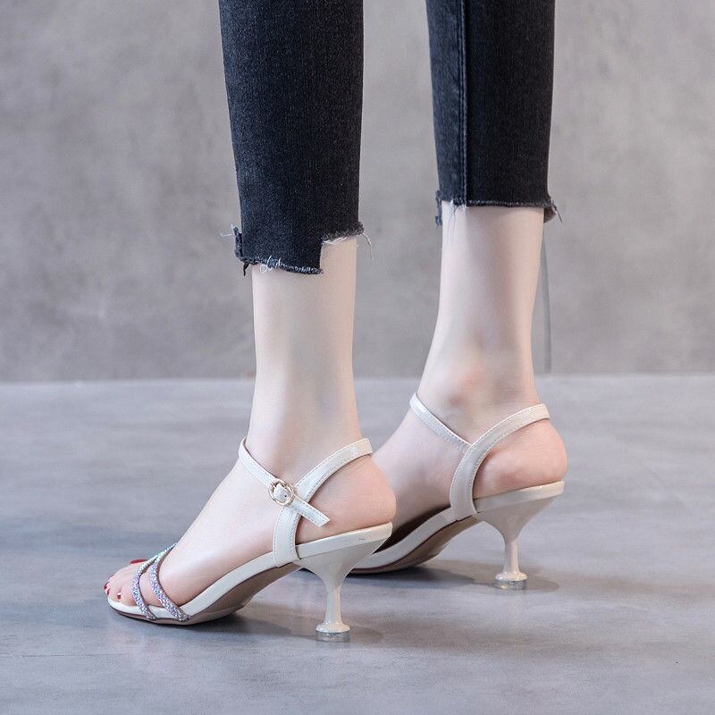 キラキララインストーンが目を引く、大人可愛いサンダル。