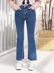 キレイめコーデにもカジュアルコーデにも大活躍のブーツカットデニム。裾に向かってゆったり広がるシルエットが体型の悩みをカバーしてくれます。切りっぱなしデザインがこなれ感を演出し、どんなトップスにも合わせやすい万能な一枚です。