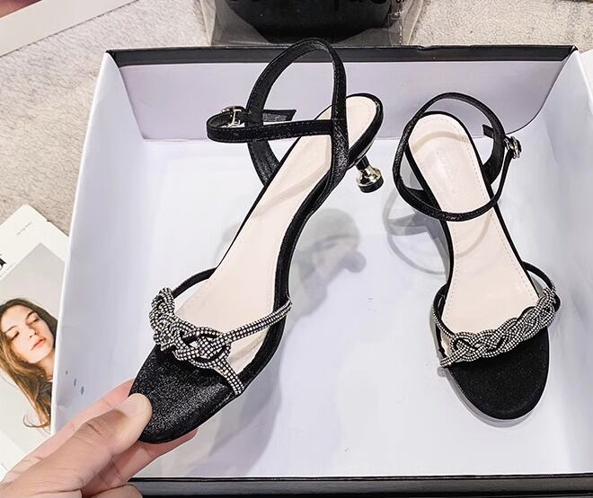 ストラップは編み込みベルトで、ラインストーンがキラキラと輝き、脚長効果も抜群です♪