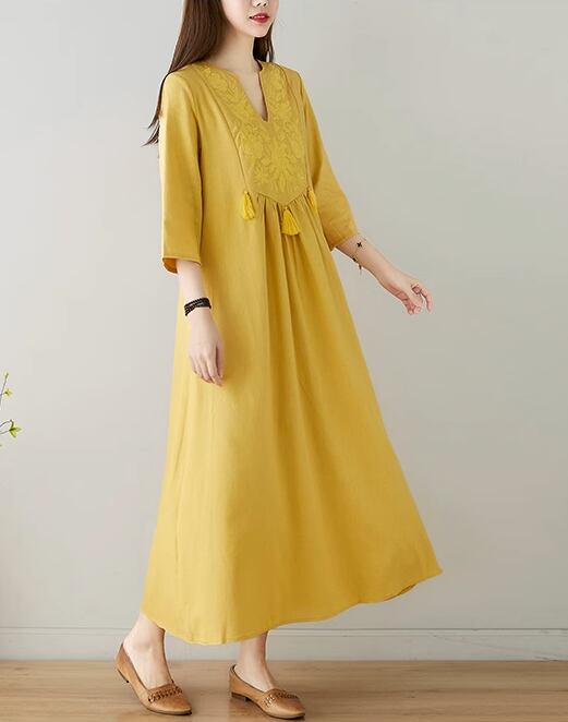エスニックスタイル 刺繡入りワンピース レディース スカート ワンピース プルオーバー オールインワン フレア フレアスカート ロングスカート 膝下 ロング 8分丈 7分袖 ヘンリーネック ワイド フレア Aライン 刺繍 ハイウエスト ギャザー 切り替えデザイン リネン かわいい 大人可愛い きれいめ シンプル カジュアル 上品 おしゃれ レトロ アジアン エスニック エキゾチック こなれ感 ラフ ガーリー ルーズ クール モード系 エレガント モダン 主役級 存在感 キュート 無地 花柄 春 夏 秋