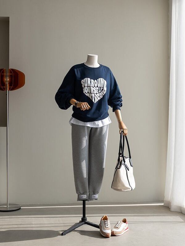 軽やかなシルエットが特徴のレイヤード風プルオーバーが登場しました。重ね着風のデザインで、一枚でトレンド感のあるスタイリングが楽しめます。ドロップショルダーと萌袖の組み合わせが、今季らしい大人可愛い雰囲気を演出します。カジュアルなクルーネックデザインで、様々なボトムスとの相性も抜群。ロゴデザインも加え、スポーティーなムードもプラス。ルーズなシルエットなので、体型カバーにも効果的です。こなれ感があるため、学生さんやおしゃれな大人の方にもおすすめです。