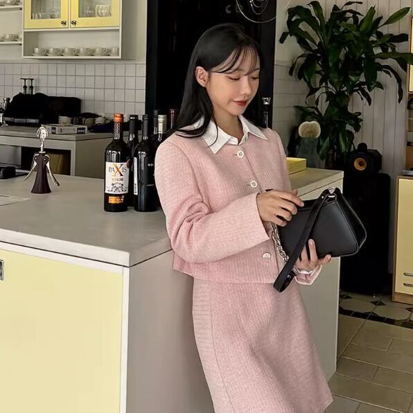 レディース ジャケット スーツ ノーカラージャケット ツイードジャケット 長袖 Uネック 襟なし ノーカラー 前開き コンサバ ボタン ツイード ラメ感 きれいめ シンプル カジュアル 上品 おしゃれ かっこいい レトロ こなれ感 マニッシュ フォーマル かっちり 都会的 ラグジュアリー クラシカル ハイエンド ドレッシー 無地 春 秋 オフィス ビジネス OL 通勤 パーティー レストラン ホテル 婚活 Bar お呼ばれ 楽ちん 体型カバー 普段使い 着回し レイヤード 清楚 トレンド ブラック ピンク
